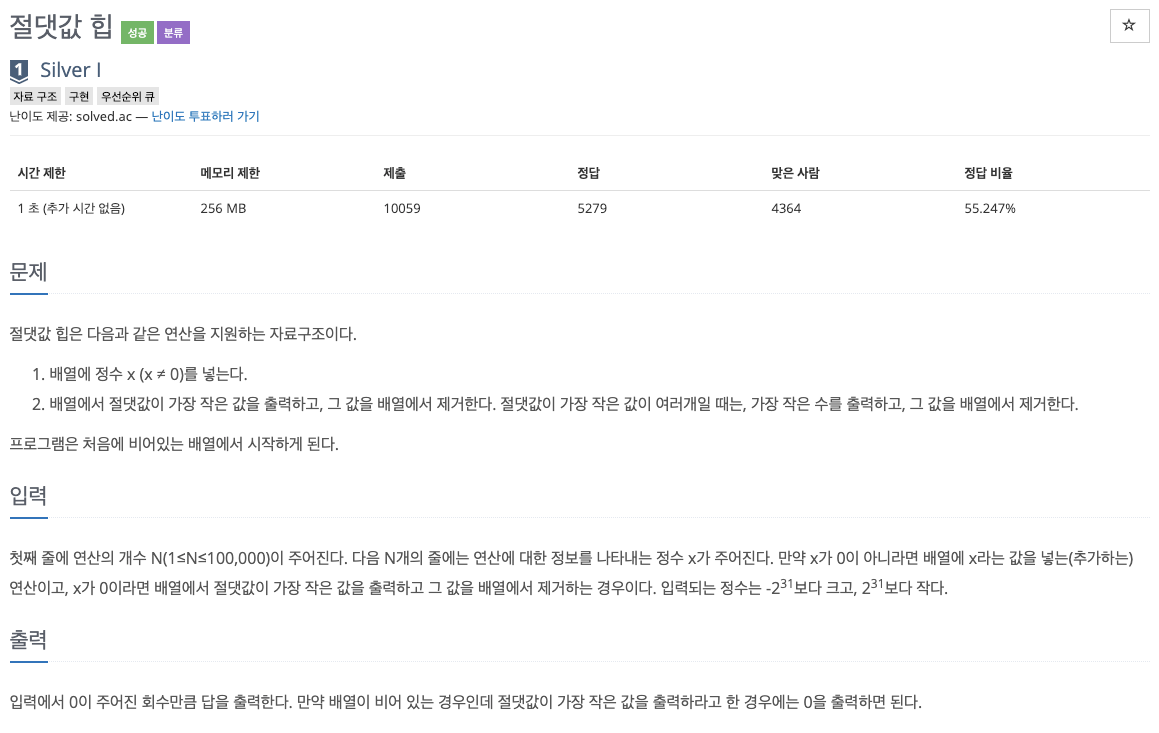 11286번 : 절댓값 힙