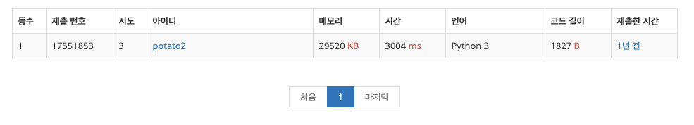 파이썬으로 맞은 분이 단 1분 밖에 계시지 않았다.. 이게 어찌된 일인가???? 심지어 20초(제한 시간)에 아슬아슬하게 들어온 것도 아니고 3초컷 하셨다. 어떤 코드인지 정말 궁금하지만 공개를 하지 않으셔서 알 수가 없다. 이런 황당한 경우는 처음 겪는다.