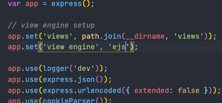 app.js의 뷰 엔진 설정 코드에서 jade를 ejs로 바꾸고