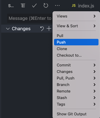 푸쉬를 하려고 하면 repository를 설정하지 않았기 때문에 오류가 발생한다. Add Remote를 통해 리포지토리를 만들고 푸쉬하면 된다.