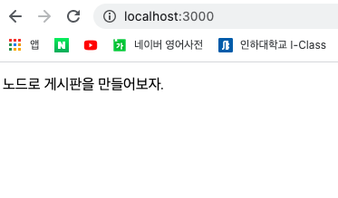 npm start 명령어를 통해 실행시키고 localhost:3000 에 들어가보면 서버가 잘 올라가 있는것을 확인할 수 있다.