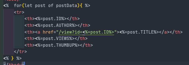 이제 view.js에서 클라이언트로부터 GET요청이 날아왔을 시 쿼리문을 생성해 DB에서 row정보를 받아오고 적용시켜야 한다.