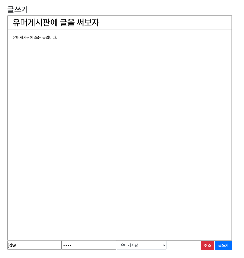 모두 작성한 뒤 테스트로 유머게시판에 한번 글을 써 본다.