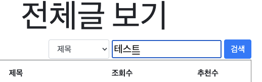 이렇게 검색 결과로 모든 게시판에서 '테스트'를 제목에 포함한 글을 불러온다. 만약 유머 게시판을 보고있던 상태로 이를 검색한다면,