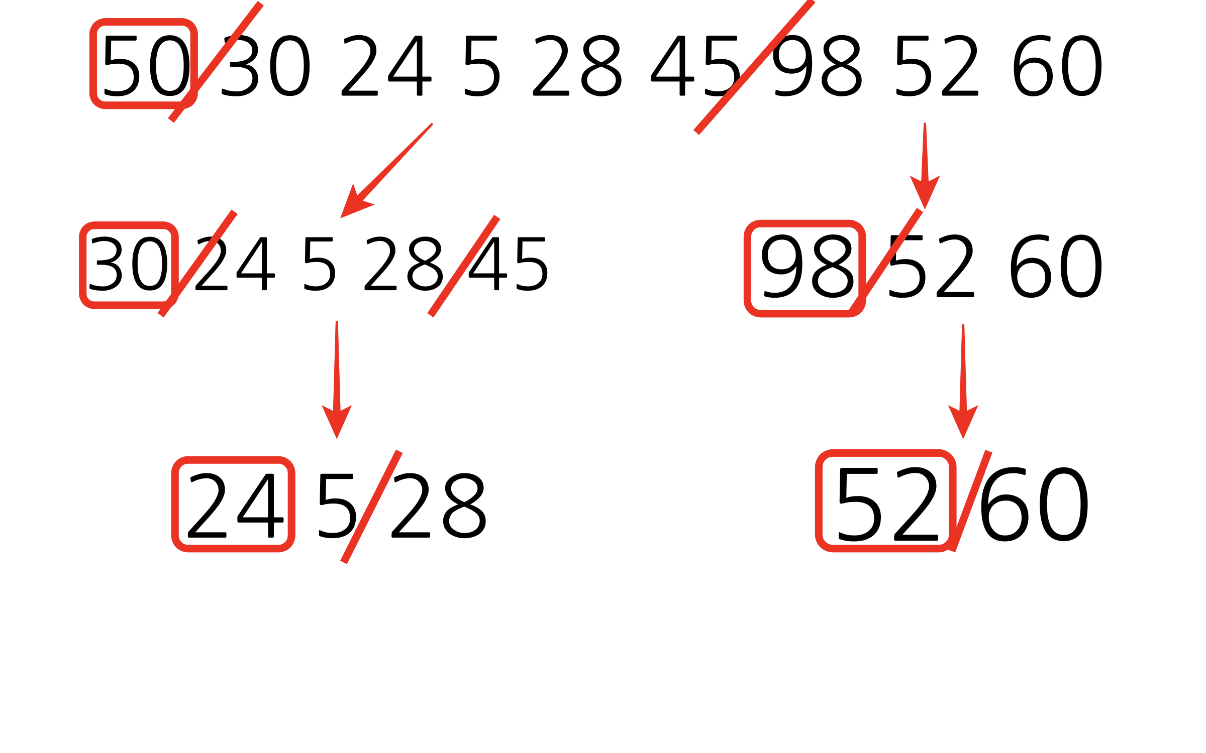 그래서 트리를 구현하지 않고 해결할 수 있는 방법을 생각해 보았는데, 루트 값을 기준으로 더 작은값과 더 큰값이 구별되는 부분을 찾아서 그 부분을 기점으로 분할 정복을 계속해 나가는 방법이 있었다.