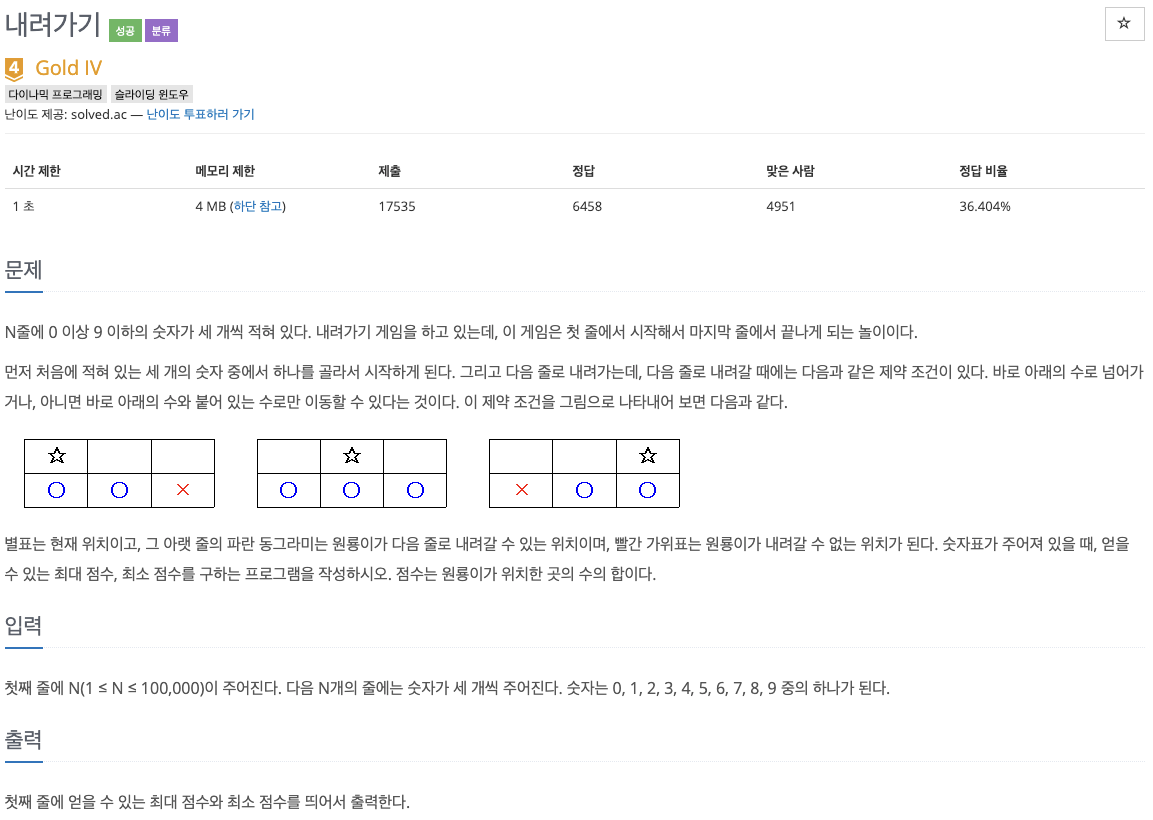 이전에 비슷한 DP문제를 풀어본적이 있어서 드물게 빠르게 풀 수 있는 문제였다. 풀고나서 알았는데 이런 문제를 슬라이딩 윈도우 라고 부르나보다.