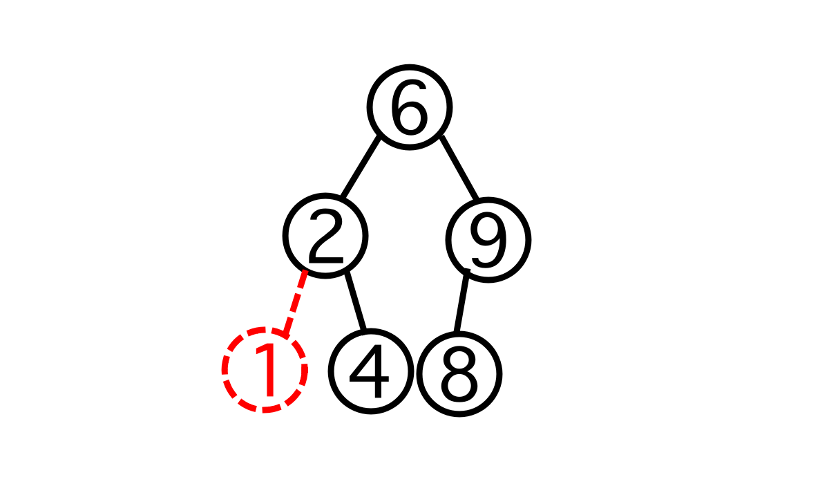 먼저 첫번째 경우, 삭제할 노드가 잎새 노드일 때를 가정하여 1을 삭제한다고 하면,