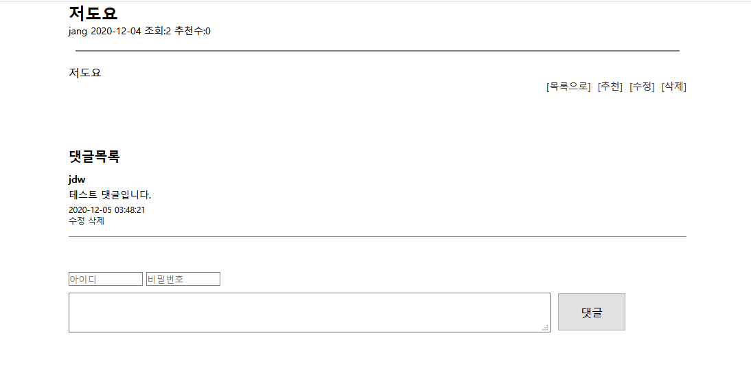 아무 글이나 들어가주면 하단에 댓글 입력 폼이 생성되어있는 것을 볼 수있다.