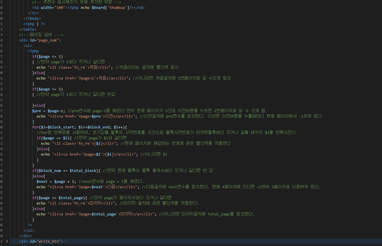 if($block_end > $total_page) $block_end = $total_page; //만약 블록의 마지박 번호가 페이지수보다 많다면 마지박번호는 페이지 수
