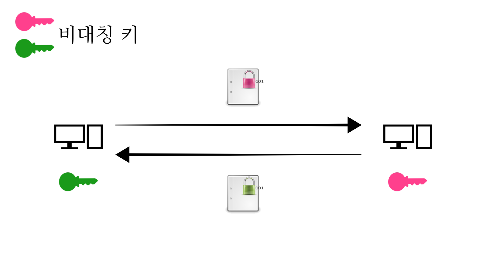 비대칭키 방식은 두개의 키를 이용하여 암호화하는 방식이다. 한쪽 키로 암호화한다면, 다른 한쪽 키로만 복호화할 수 있다. 여기서 암호화하는 키를 공개키라고 부르고 복호화하는 키를 개인키라고 부른다. 비대칭키는 대칭키보다 안전하지만, 연산 과정이 대칭키에 비해 훨씬 무겁다는 단점또한 가지고 있다.