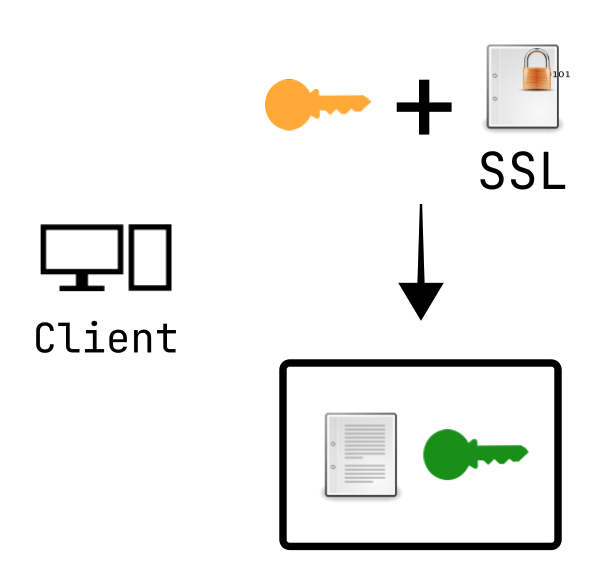 이제 서로 비대칭키 방식으로 계속 통신하면 좋겠지만, 아쉽게도 비대칭키는 연산이 무겁다. 따라서 클라이언트에서는 하나의 대칭키를 만들고(정확히는 Handshaking 과정에서 서로 랜덤한 문자열을 주고받은 뒤, 임시키를 만들어서 임시키를 대칭키로 바꾸는 작업이 필요하다), 방금의 인증 과정을 통해 얻은 신뢰할 수 있는 페이지의 공개키를 통해 암호화 한뒤 서버에게 보낸다. 대칭키의 전송 과정을 암호화했기 때문에 대칭키의 단점인 키 전송에서의 문제를 해결한 것이다.