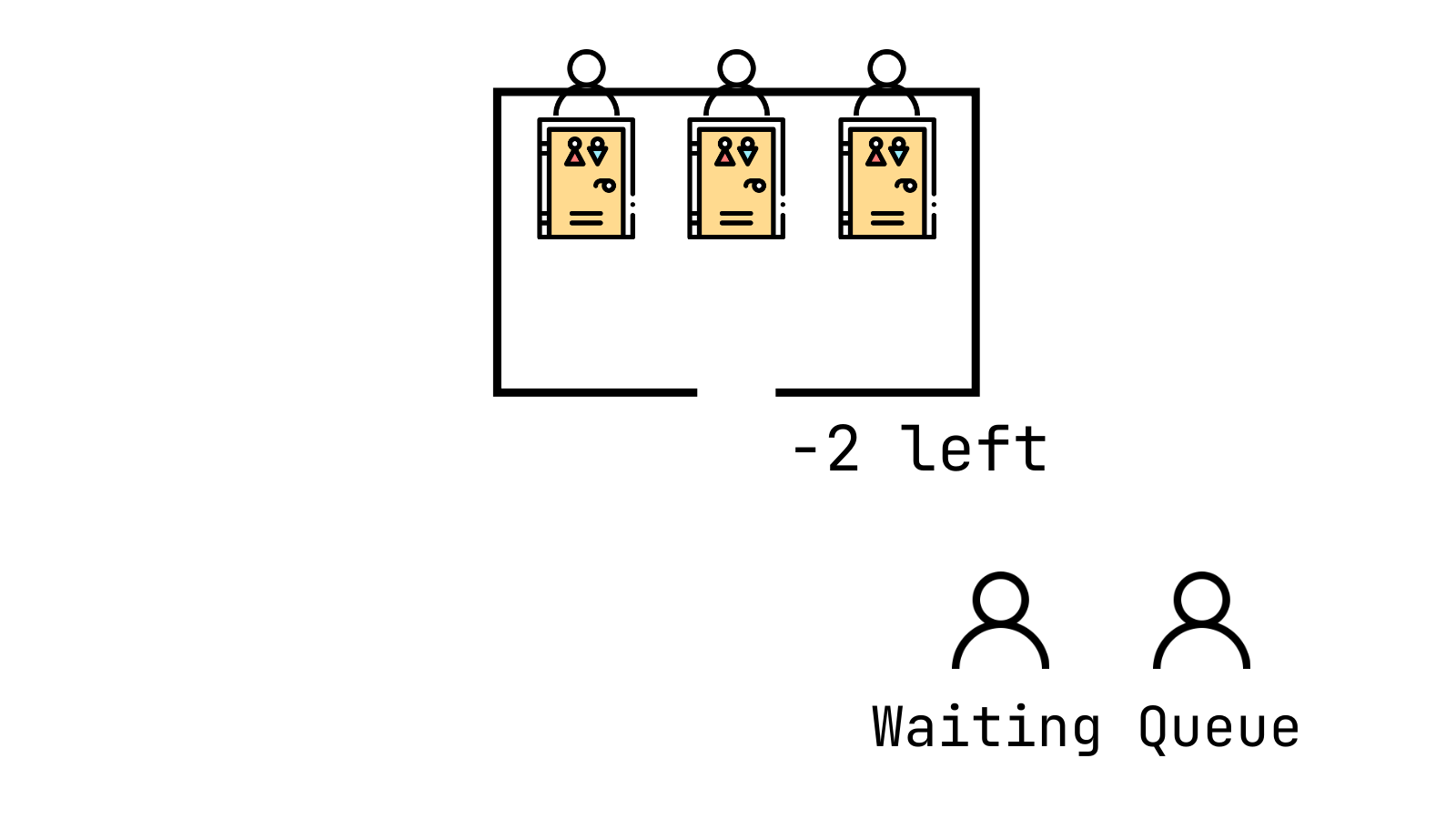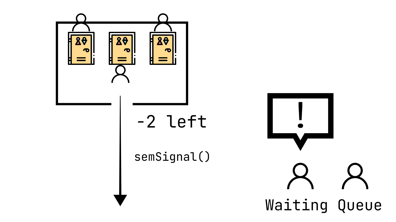 그래서 만약 공유 자원이 전부 사용되고 있고, 2개의 스레드가 기다리고 있다면 세마포어 변수는 -2가 된다.