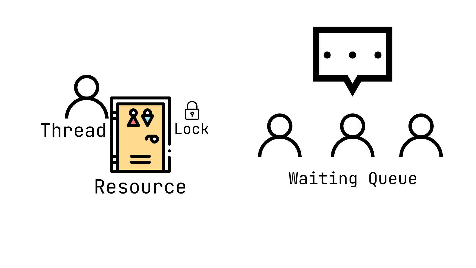 예시로 화장실을 공유 자원(또는 임계 영역)이라고 생각하고, 이용자를 스레드라고 생각한다.