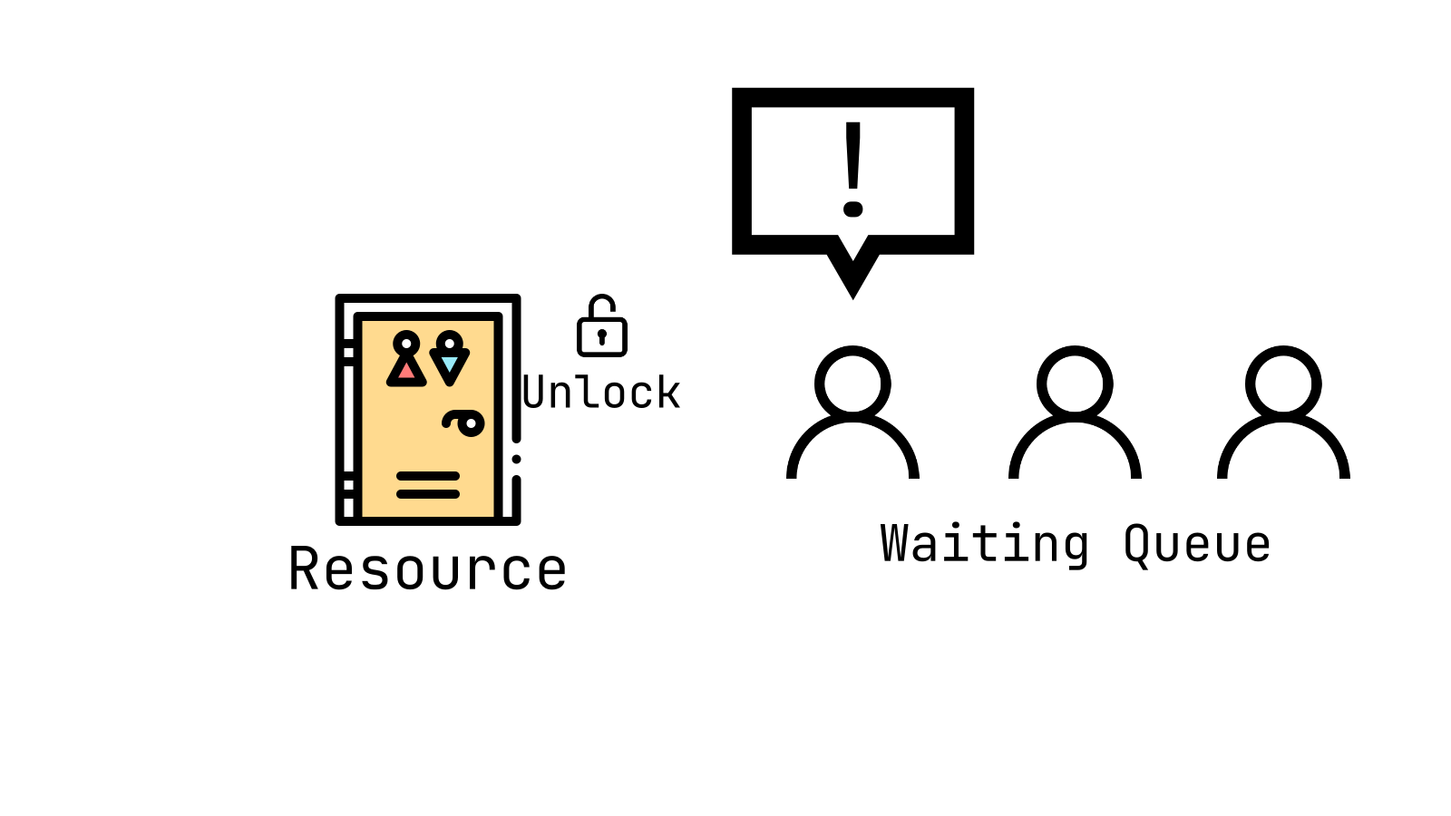 해당 공유 자원의 사용이 끝나면 Unlock 상태로 변경되고, 대기 큐에서 다른 스레드가 해당 자원에 접근할 수 있게 된다.