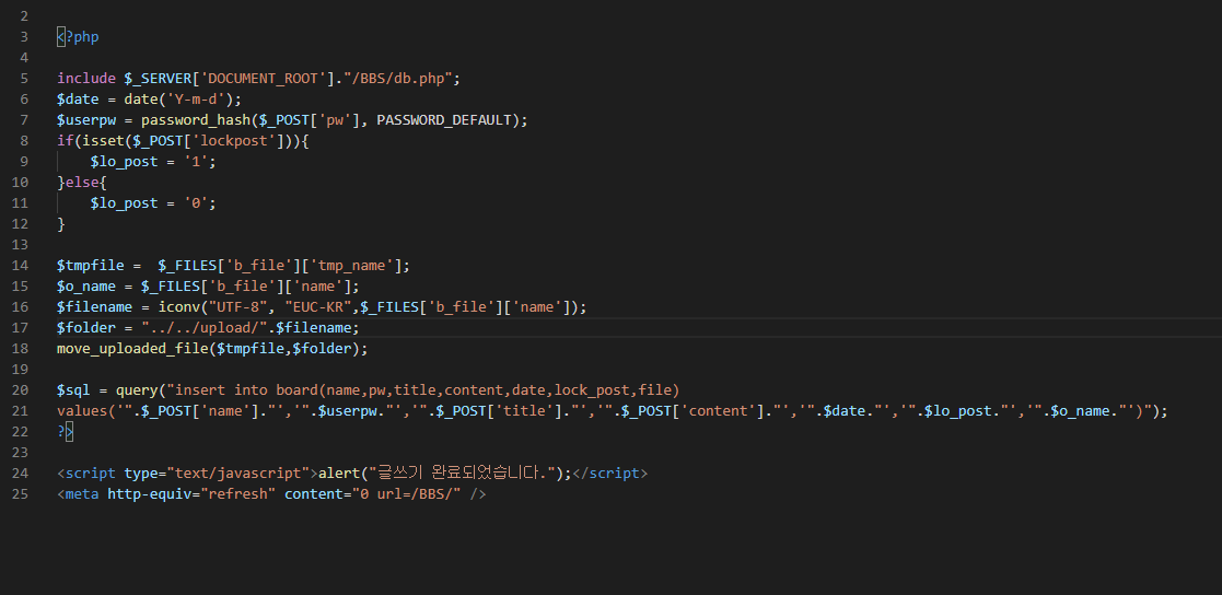 그리고 write.php를 수정해준다.