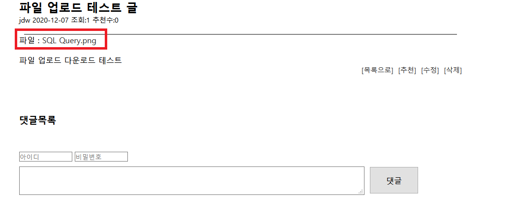 그러면 글을 작성 완료하는 순간 지정한 upload 폴더에 업로드한 SQL Query.png 파일이 업로드된다.