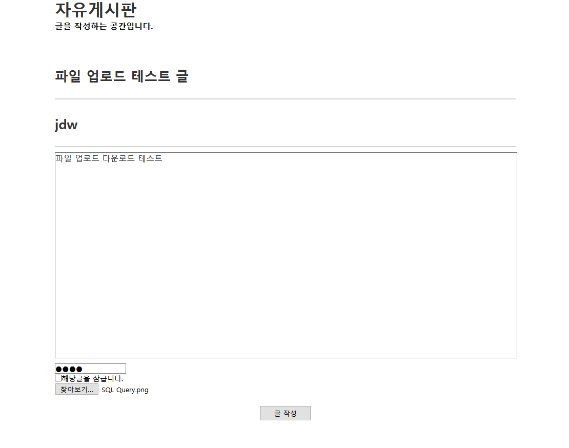 내용을 대충 작성하고 테스트용 이미지 파일을 하나 업로드 한뒤에 글을 작성한다.