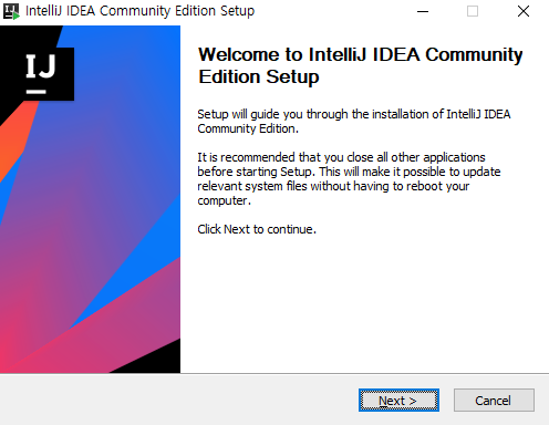 설치를 위해서 https://www.jetbrains.com/ko-kr/idea/download/#section=windows 에 접속한다.