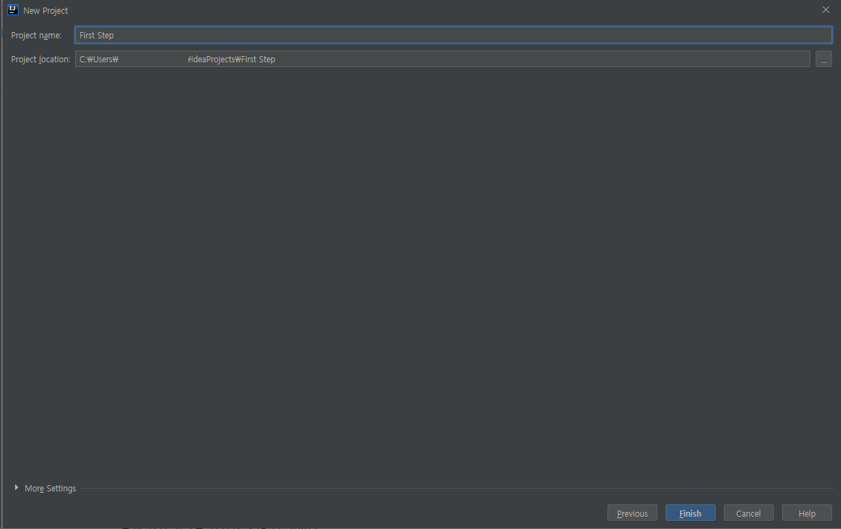그러면 어렵지 않게 프로젝트 생성 화면으로 오게 될 것이다! 이제 Finish를 누르면,