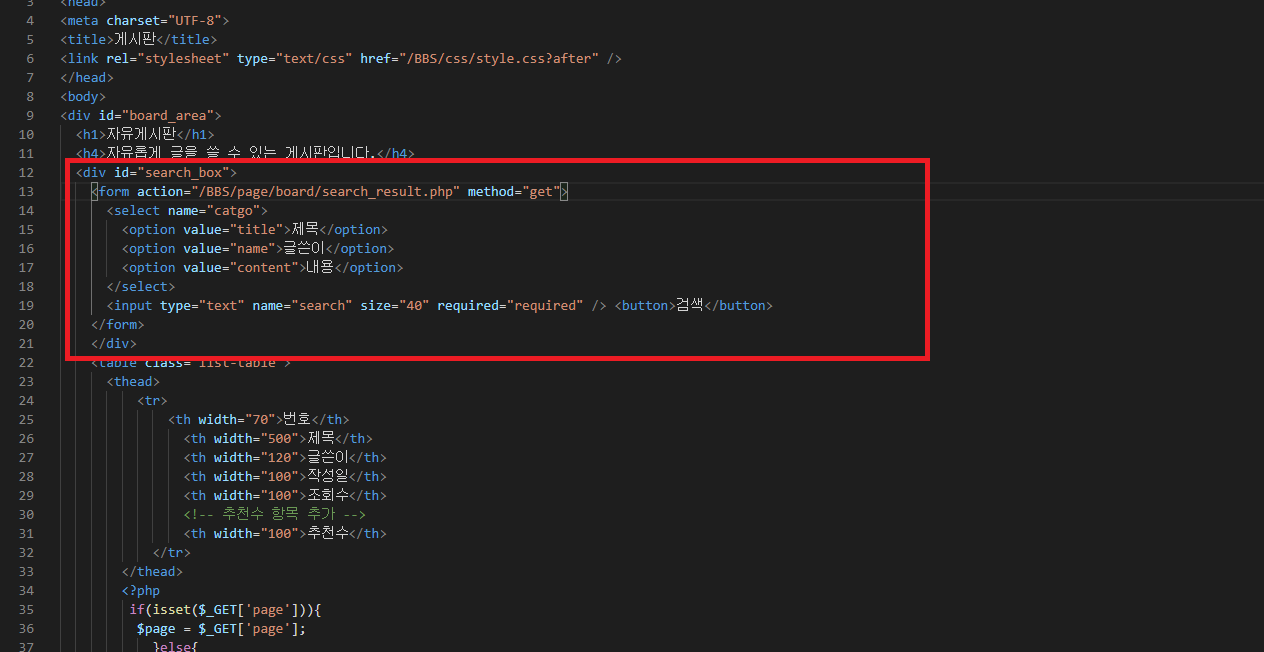 이 검색박스는 search_result.php로 이어진다. 이어서 search_result.php를 작성한다.
