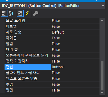 내용 수정은 해당 컨트롤러를 클릭하고 우측 아래 '캡션' 에서 내용을 수정하면 된다.