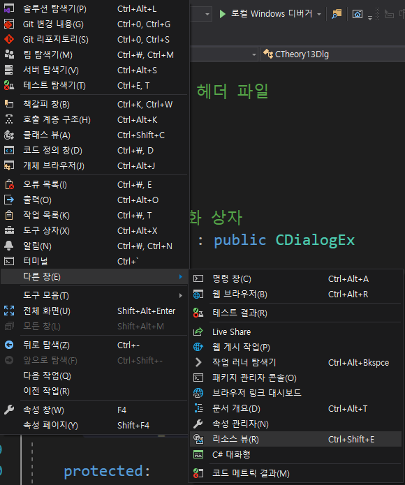 일단 무엇을 만들기 전에 좀 더 편하게 작업하기 위해 리소스 뷰를 띄울 것이다.