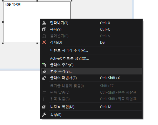 입력란에 우클릭을 하고, 변수 추가를 선택한다.