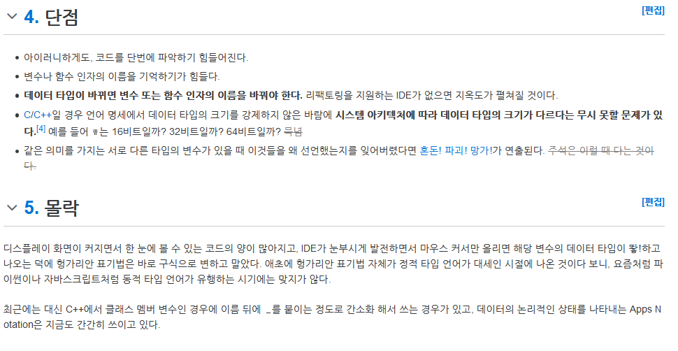 헝가리안 표기법? 여기서부터 조금 안좋은 느낌이 들었다. 내가 아는 헝가리안 표기법은 이미 몰락한.. 그 표기법이 아닌가.. 엄청 옛날에 쓰던 표기법인걸로 아는데..