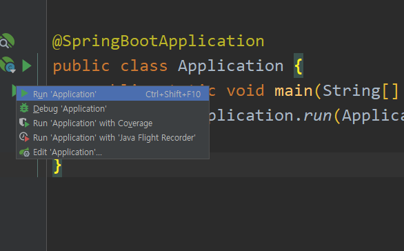 일단 main 아래에 Application.java를 작성해준다. 이는 앞으로 만들 프로젝트의 메인 클래스가 된다. @SpringBootApplication 어노테이션을 통해 스프링 부트의 여러가지 설정들을 자동으로 처리한다.