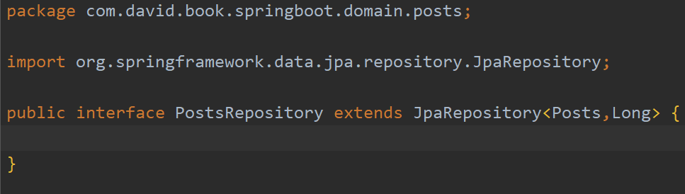 이제 Posts 클래스가 Database에 접근하게 하기 위해서 JpaRepository를 생성해야 한다.