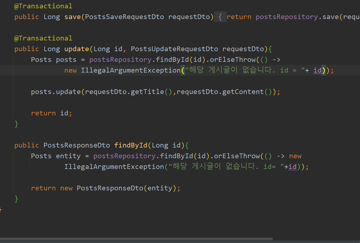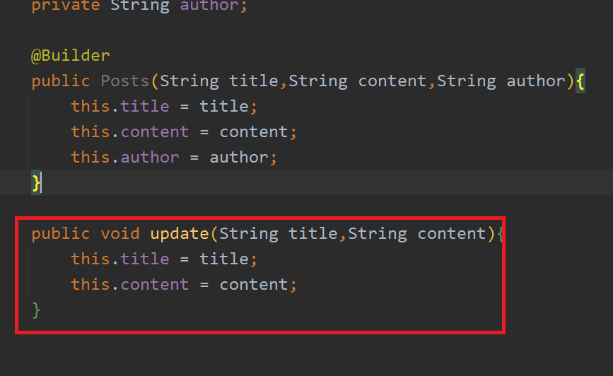 Posts 클래스에도 글 수정을 위한 update 메서드를 만들어 준다.
