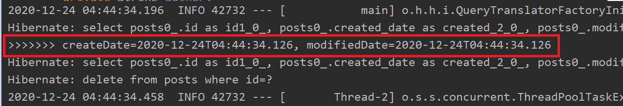 로그에 createdDate와 modifiedDate가 잘 출력되는것을 확인할 수 있다.