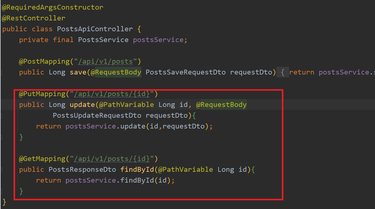 PostsApiControllerTest에 방금 추가한 기능들을 테스트하기 위한 테스트 코드도 작성하였다.
