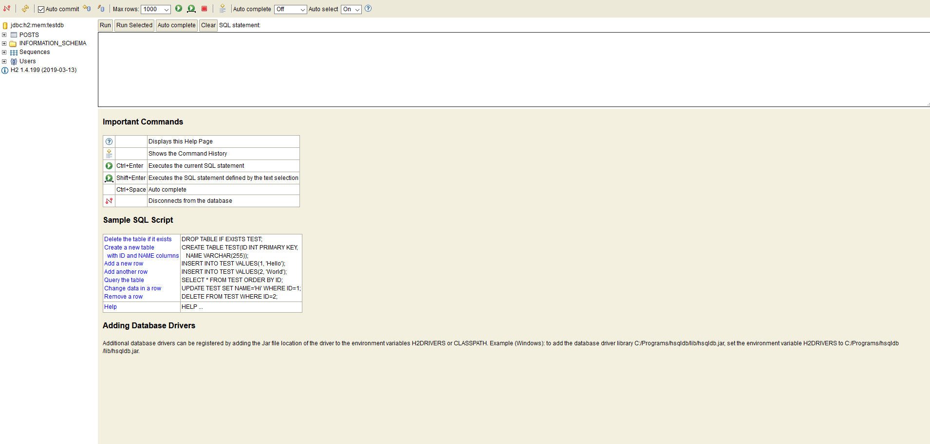 이런 로그인 창이 나오는데 JDBC URL 부분을 꼭 jdbc:h2:mem:testdb로 맞춰줘야 한다고 한다.
