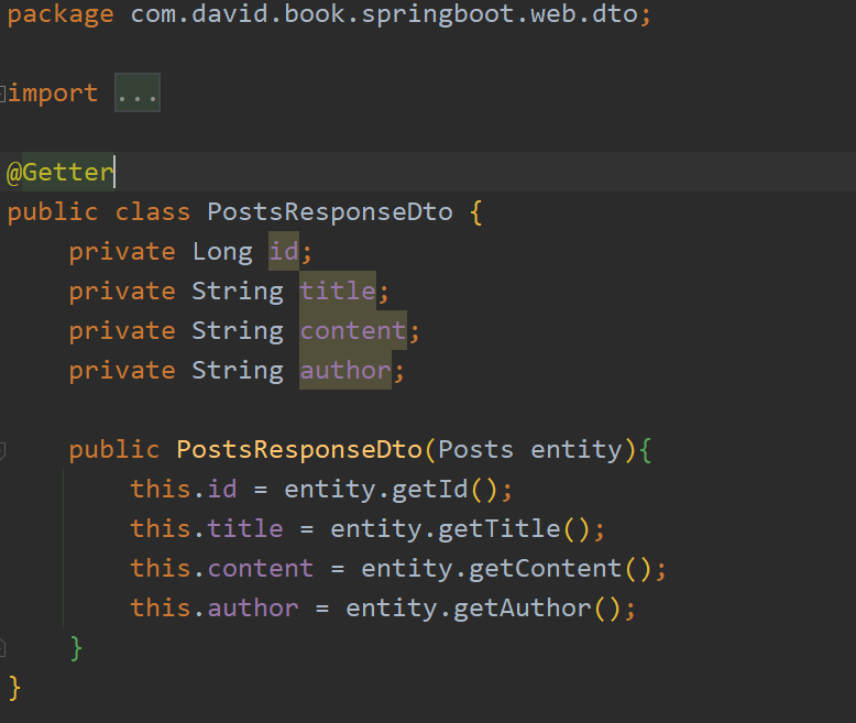 응답용 Dto 클래스도 작성. 별 내용은 없다