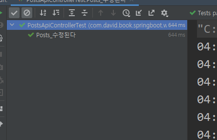 PostsRepositoryTest클래스에 이를 테스트하기 위한 테스트 코드를 작성했다.