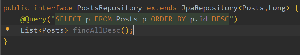 PostsRepository.java에도 코드를 추가해준다. Posts Entity에서 Posts를 가져온다.