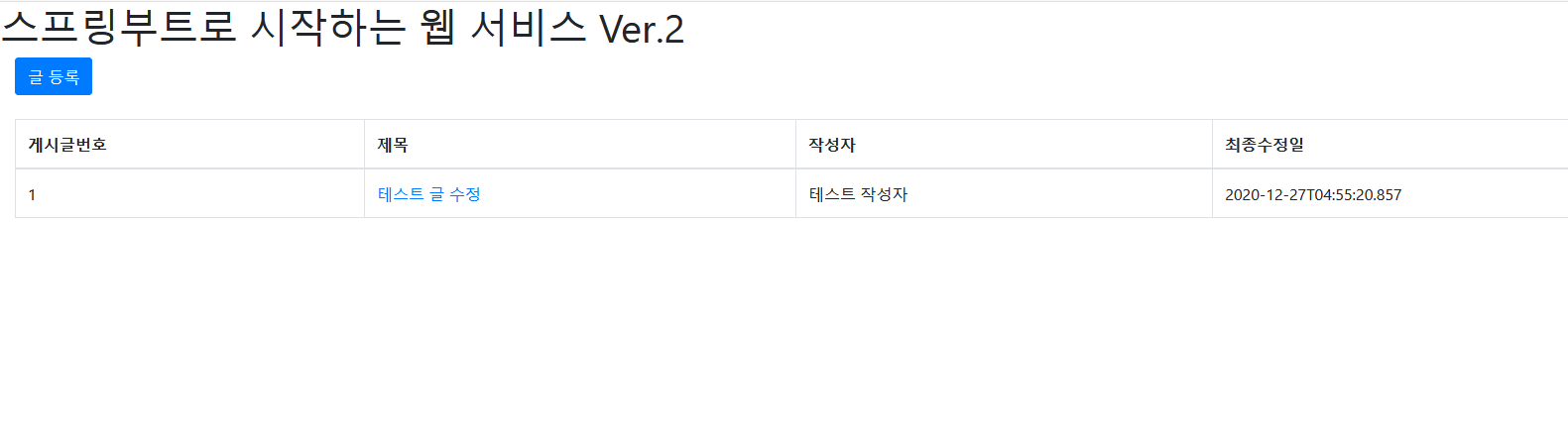 [Spring Boot]수정,조회 API 제작과 JPA Auditing 적용하기 (0) | 2020.12.24 |
