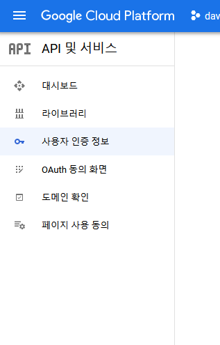 그 뒤, API 및 서비스에서 사용자 인증 정보를 선택