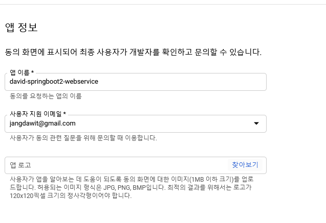 외부 를 선택하고 앱 이름과 이메일 입력 후 넘어간다.
