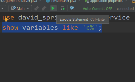 show variables like 'c%'를 통해 파라미터들의 값이 제대로 바뀌었는지 확인한다.