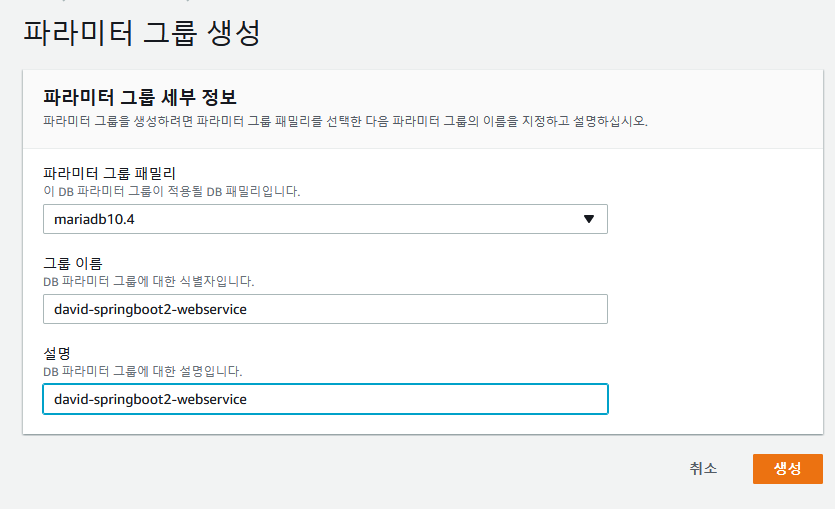 파라미터 그룹 생성