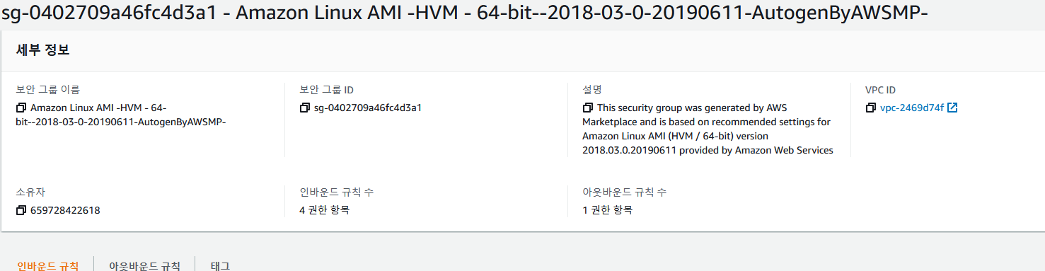 이제 EC2 인스턴스로 가서 보안 그룹 ID를 복사해준다.