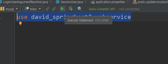 그 콘솔에서 use DB명으로 DB를 선택해준다. 쿼리 실행은 Ctrl + Enter