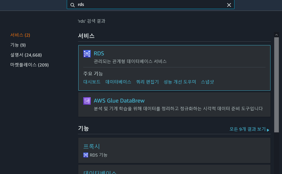 먼저 검색창에서 RDS 검색