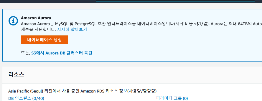 이제 RDS에서 필수적으로 해야하는 세팅을 진행한다.