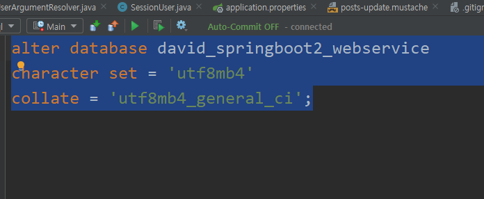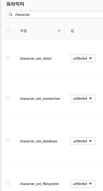 character를 검색하여 나오는 6개를 모두 utf8mb4로 변경