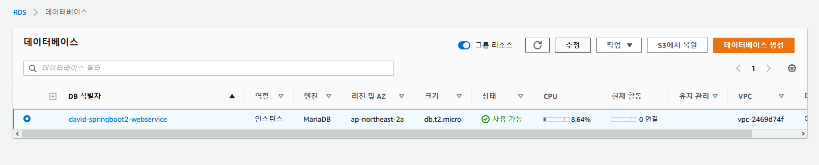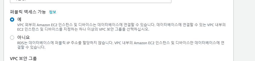 이제 EC2 인스턴스가 해당 RDS에 접속할수 있도록 하고, 내 PC로도 접속할 수 있도록 한다.