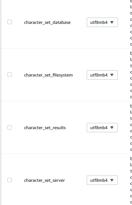character를 검색하여 나오는 6개를 모두 utf8mb4로 변경