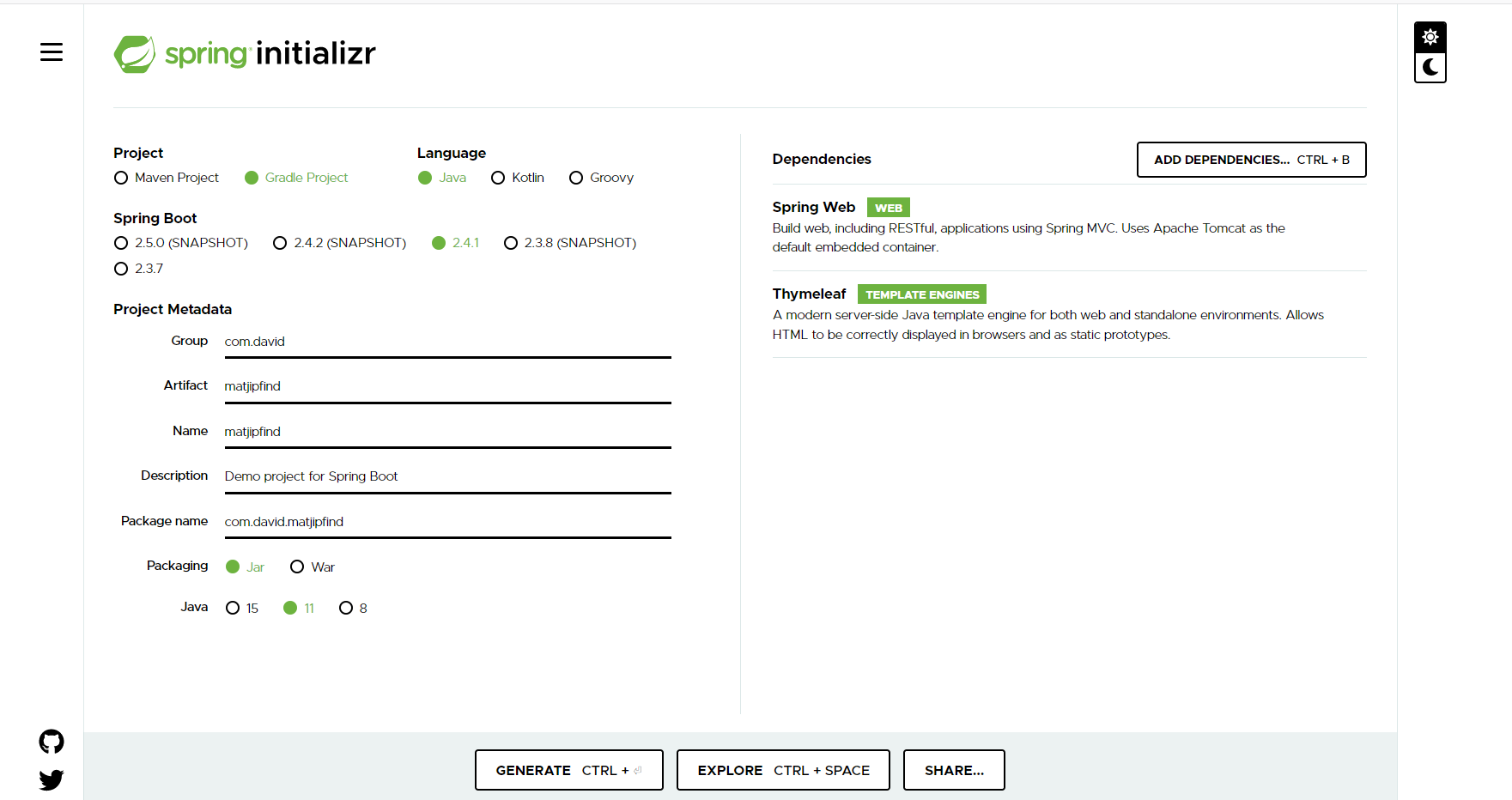 start.spring.io/ 이곳에 접속하면